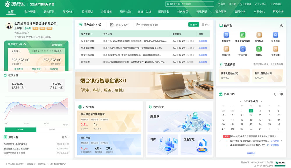 在数字化浪潮席卷全球的当下,烟台银行持续提升客户金融服务体验,于10月25日推出新一代企业综合服务平台——智慧企银3.0系统。