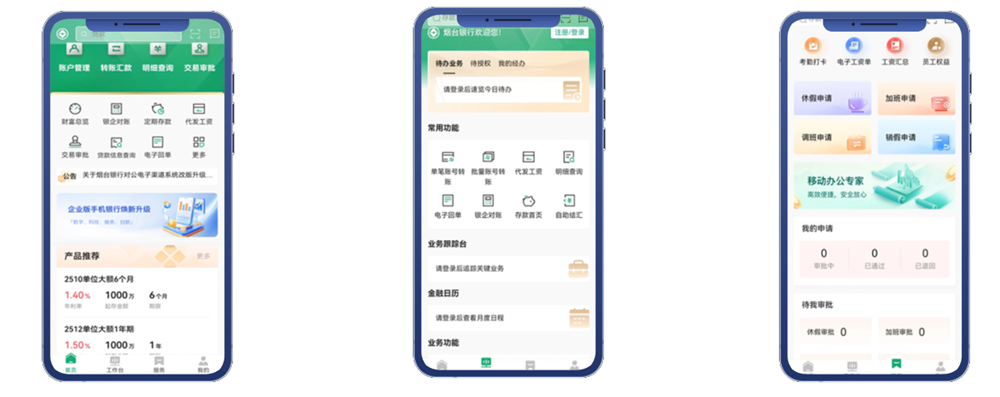 系统深度赋能移动办公,企业手机银行功能与网银端同步增强,增加代发工资、批量转账在移动端的录入和业务授权、审批和查询,打破时空限制,实现跨渠道高效协同。